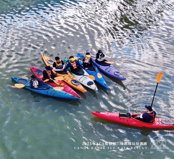 本次培训历时4天,采用国际标准的皮划艇教练培训体系,设置系统的教学课程。培训内容涵盖皮划艇运动发展史、教学理论与方法、技术动作解析、安全操作规程及应急救援预案等理论模块,同时开展平静水域与开放水域的技术训练、教学演示与实践评估等实操课程。参训学员需通过教学能力展示、技术动作考核和理论测试三个环节的综合评定,方可获得认证资格。
