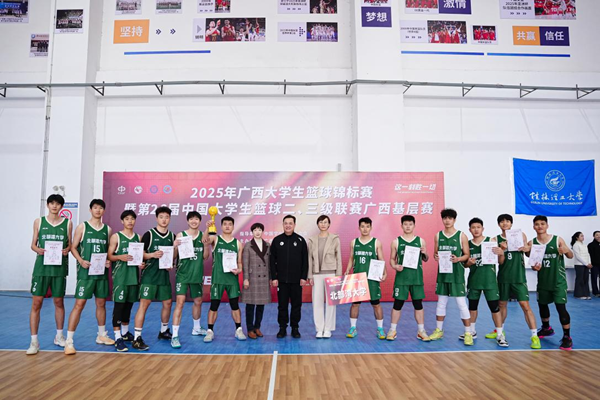 2025年12月14日,第28届中国大学生篮球二级联赛(CUBAL)广西基层赛决赛在广西体育高等专科学校落幕。经过激烈角逐,北部湾大学男篮在领队唐明欢、主教练黄胜贤、助理教练梁美莹与邓欣组成的教练团队指导下,凭借顽强拼搏与出色发挥,勇夺赛区冠军。创造了历史最佳成绩。