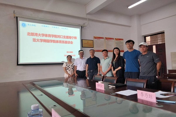 5月16日下午,南宁师范大学师园学院体育系主任邓朝,体育系党总支书记、教学秘书陈秋燕一行到我院商谈对口支援工作。会议在11栋教学楼413会议室举行,体育学院院长李乃琼、院长助理唐明欢及行政人员出席座谈会。