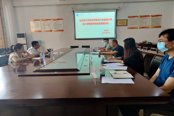 会上,我院院长李乃琼对南宁师范大学师园学院体育系的来访表示热烈欢迎。首先,南宁师范大学师园学院体育系主任邓朝简要介绍了师园学院体育系的基本概况和发展历程,希望我院能从学科专业建设、师资队伍建设、科研服务能力、学生就业、教务管理等方面对师园学院体育系提供对口支援帮扶。我院院长李乃琼对师园学院体育系的发展表示肯定,并就对口支援有关事项的工作情况及经验做法进行了交流。