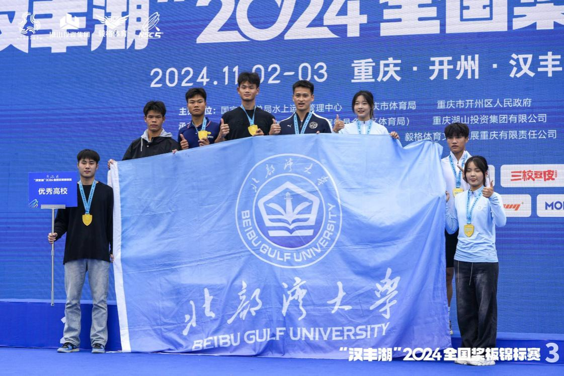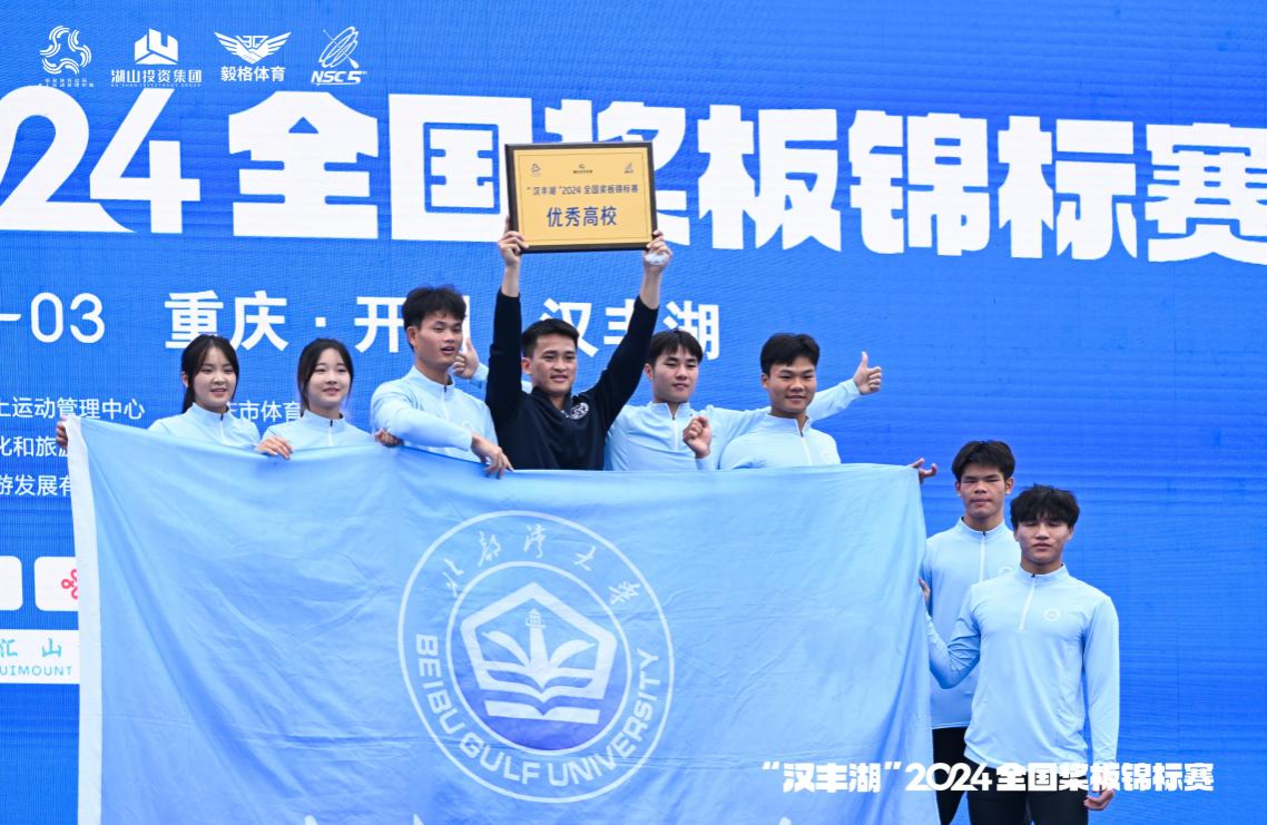 我校参加了个人200米竞速赛、6000米长距离赛、5X200米接力赛等3个项目的比赛。赛场上,我校运动健儿稳定发挥,充分展现了湾大人的良好精神风貌和竞技水平。在晋级决赛的五个组别项目中,韦进红同学获得200米竞速赛高校乙组男子决赛第四名,这也是我校桨板运动队自成立以来取得的最佳个人成绩,其余几位同学也分别在各单项赛上斩获佳绩,共获10个奖项,并获得“汉丰湖”2024全国桨板锦标赛“优秀高校”荣誉称号。
