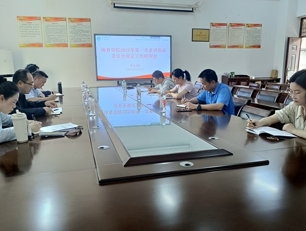 2025年3月28日,体育学院于11-414会议室召开本年度第一次意识形态和安全稳定分析研判会。学院领导、党支部负责人及教师代表参会,围绕师生思想建设、教学(实验室)安全管理等进行了研判。会议由党委书记漆刚主持。