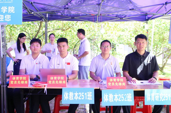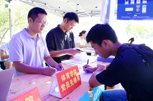 马秀明副校长(左五)到体育学院迎新报到点走访
