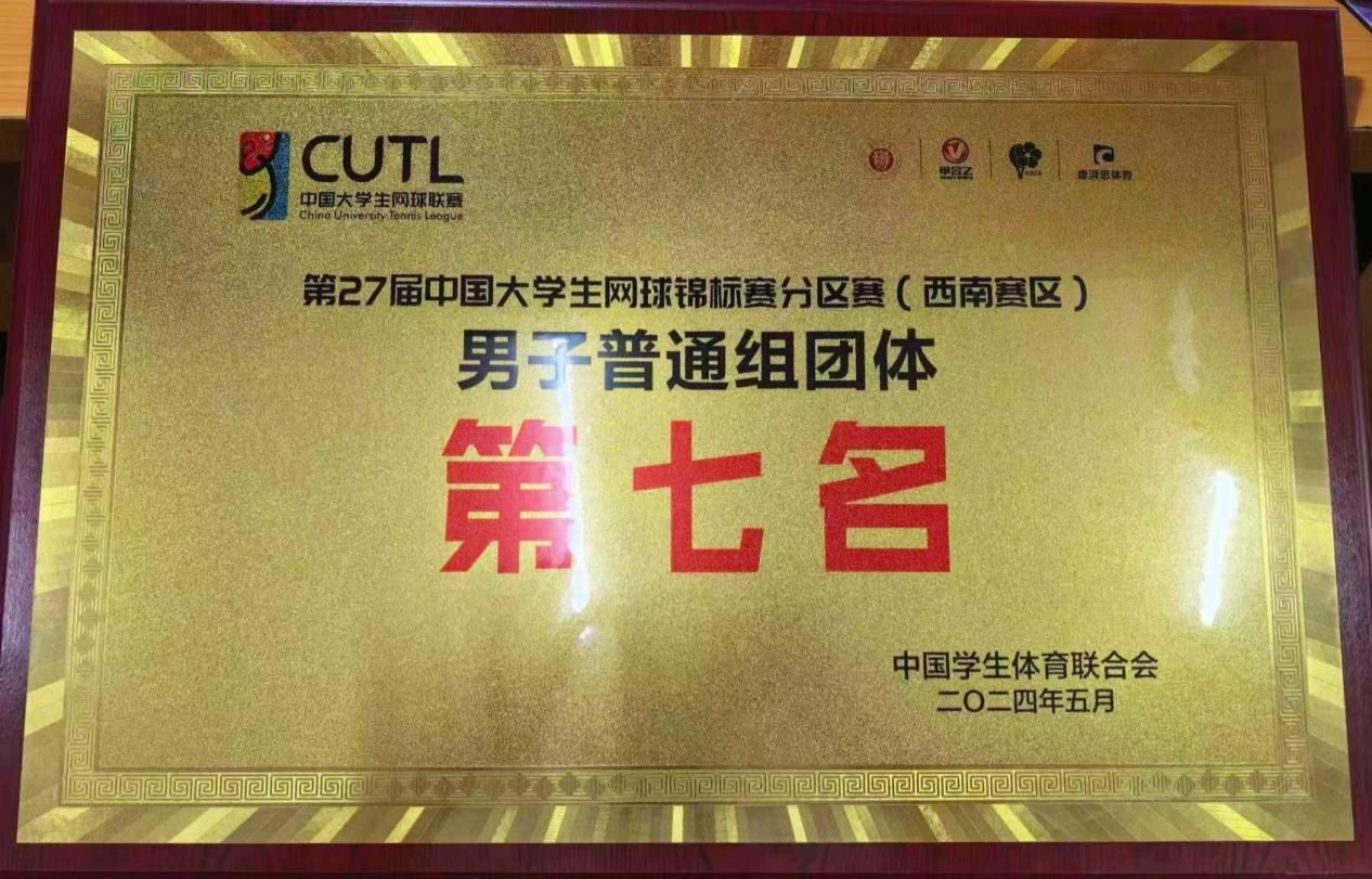 在为期四天的比赛里,我校网球队展现出良好的技术和昂扬的精神面貌,经过激烈角逐,在小组赛中成功战胜了昆明理工大学和广西师范大学,获得中国大学生网球锦标赛(西南赛区)男子甲组团体比赛第七名。