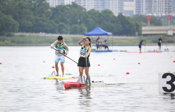 北部湾大学桨板队队员张瑛(校园组女子200米冠军)