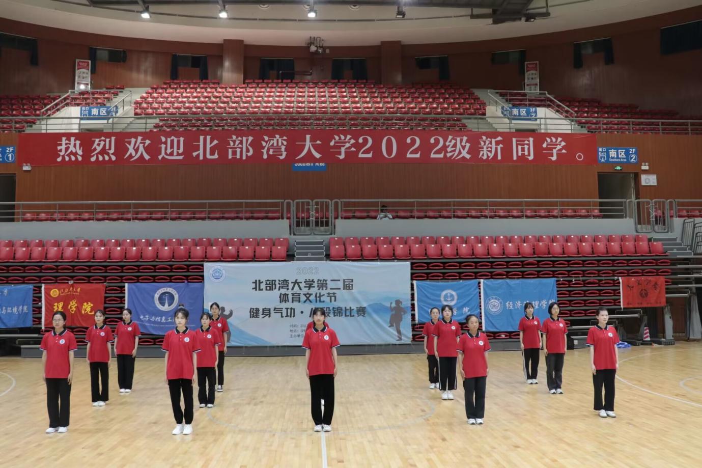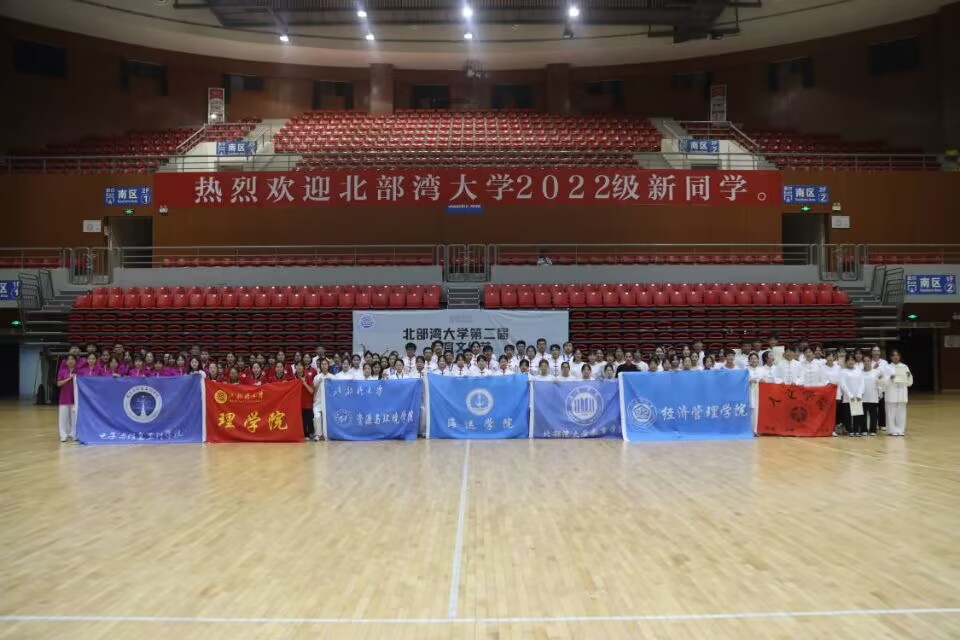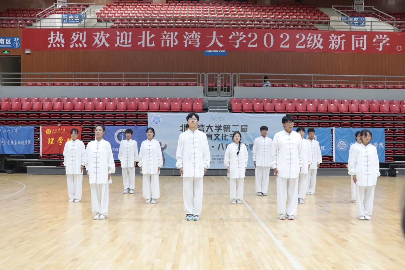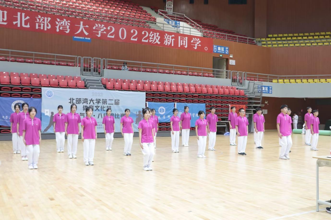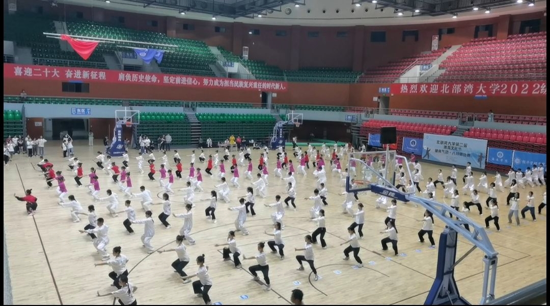 千载强身传有名,操功八段戏纷呈。2022年11月21日,由学校主办,体育学院承办的北部湾大学第二届体育文化节健身气功八段锦比赛在学校体育馆圆满落幕。本次比赛分为团体赛和个人赛,来自全校各学院选派的8支队伍,近200名师生参加了本次比赛。