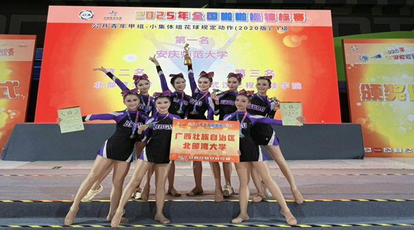 五月的合肥热情似火,2025年全国啦啦操锦标赛(中大组)5月21日至24日在安徽合肥新站高新区少荃体育中心激情绽放。在这场汇聚全国24个省区市182支劲旅、7300余名精英的啦啦操盛会上,北部湾大学运动健儿以"1冠3亚1个第七"的骄人战绩,在全国舞台上书写了桂风海韵的青春华章。