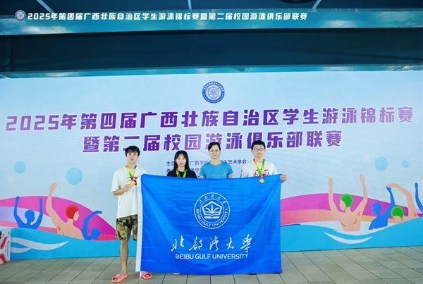2025年6月14日至15日,由广西体育卫生艺术学会主办的第四届广西壮族自治区学生游泳锦标赛在南宁市青少年活动中心游泳馆激情上演。北部湾大学体育学院派出阮俊淳、苏有荣、韦颖晨三名运动员组成代表队,在许莉教练带领下,克服训练周期短、场地设施有限等困难,以昂扬斗志鏖战群雄,最终斩获4项第一名、1项第二名、3项第三名和1项第四名的突破性战绩。