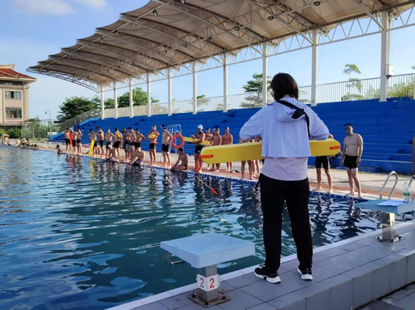 为提升师生水上救生技能,保障海洋运动教学安全,支撑“国际海洋运动学院”建设,北部湾大学体育学院于2025年6月21日在学校游泳池顺利举行了国家职业资格游泳救生员鉴定考核。本次考核共有40名师生参与。