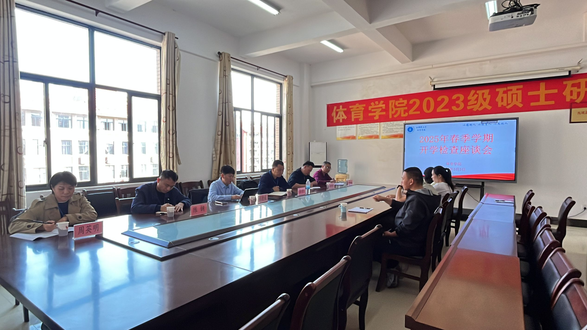 2025年3月3日,体育学院全面启动春季学期开学检查工作,并在11号教学楼414会议室召开开学检查座谈会。学校开学检查工作小组、学院领导以及相关工作人员共同出席了此次座谈会。